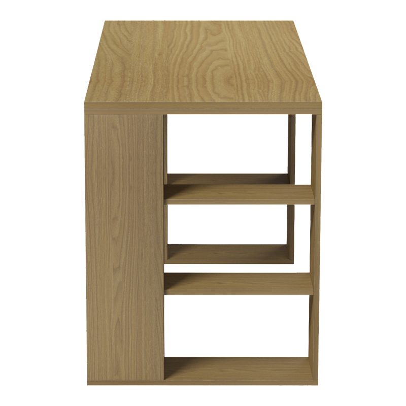 - Οι δύο πλευρικές βάσεις λειτουργούν ως ενσωματωμένες ραφιέρες, προσφέροντας συνολικά έξι (6) ανοιχτά ράφια για την εύκολη οργάνωση βιβλίων, φακέλων ή διακοσμητικών αντικειμένων, διατηρώντας την επιφάνεια εργασίας καθαρή.