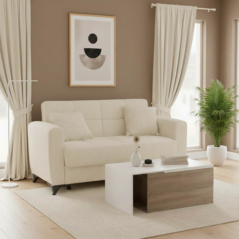 - Φέρει εύχρηστο μηχανισμό που με μία μόνο κίνηση ανασηκώνεται, μετατρέποντας τον καναπέ σε κρεβάτι και το αντίστροφο.