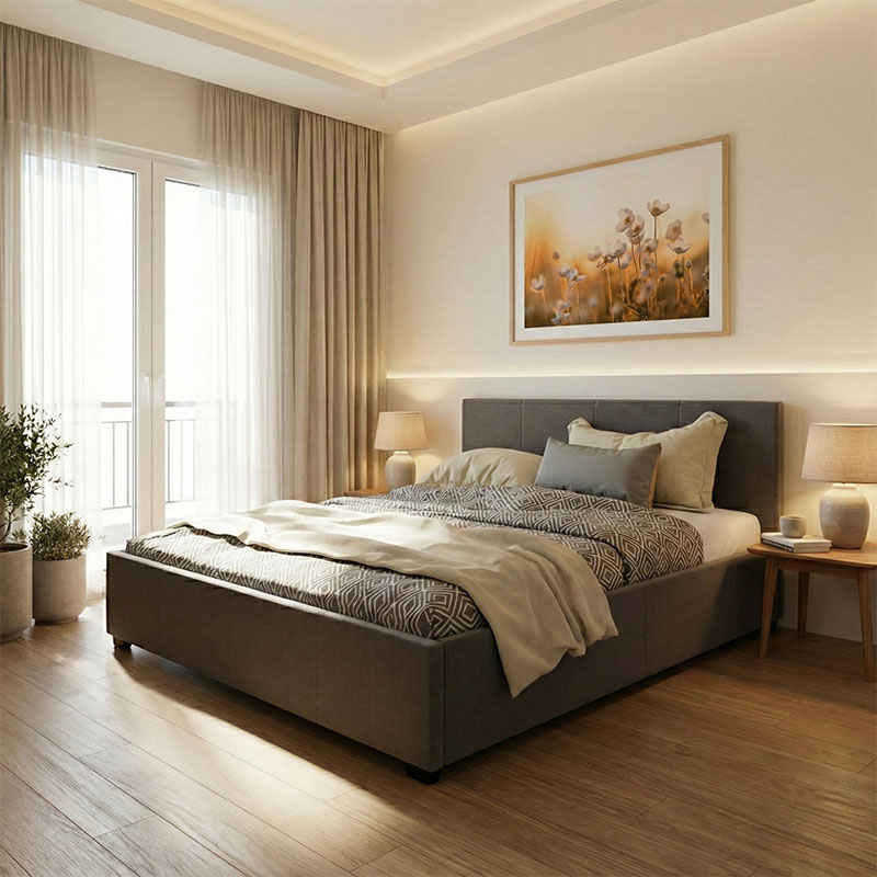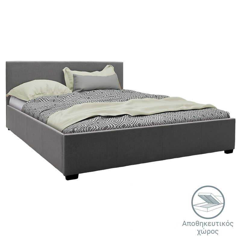 Κρεβάτι διπλό Norse pakoworld ύφασμα ανθρακί με αποθηκευτικό χώρο 160×200εκ