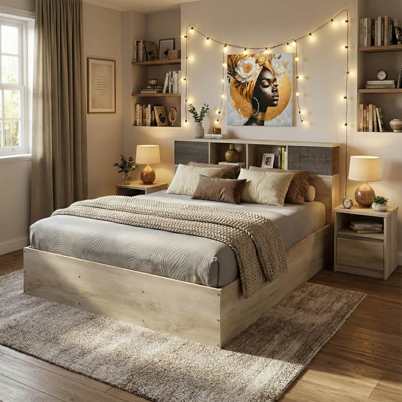 - Το κεφαλάρι περιλαμβάνει δύο ραφάκια για τα αγαπημένα σας χρηστικά αντικείμενα που θέλεις πάντα δίπλα σου