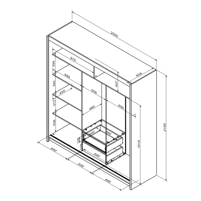 * Στο εσωτερικό περιλαμβάνει μία βέργα για κρεμάστρες και πέντε ράφια.