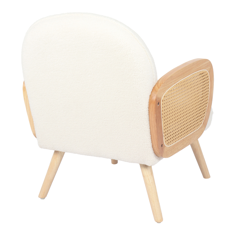 - Επένδυση πλάτης και έδρας από μπουκλέ ύφασμα εξαιρετικής ποιότητας.