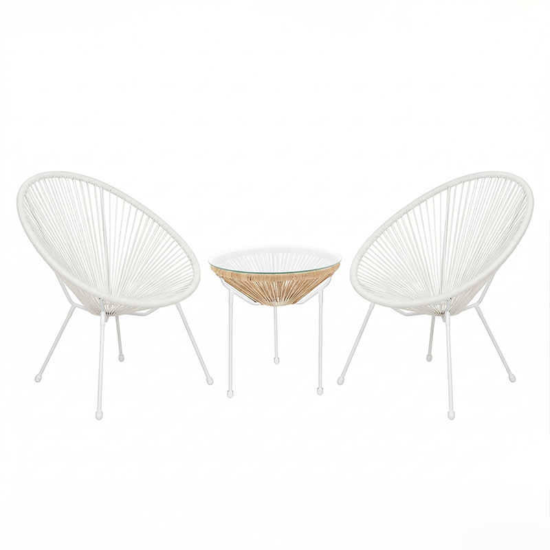 Σαλόνι Εξωτερικού Χώρου Acapulco pakoworld Σετ 3τεμ λευκό μέταλλο με pe rattan σε φυσική απόχρωση Φ50×52εκ