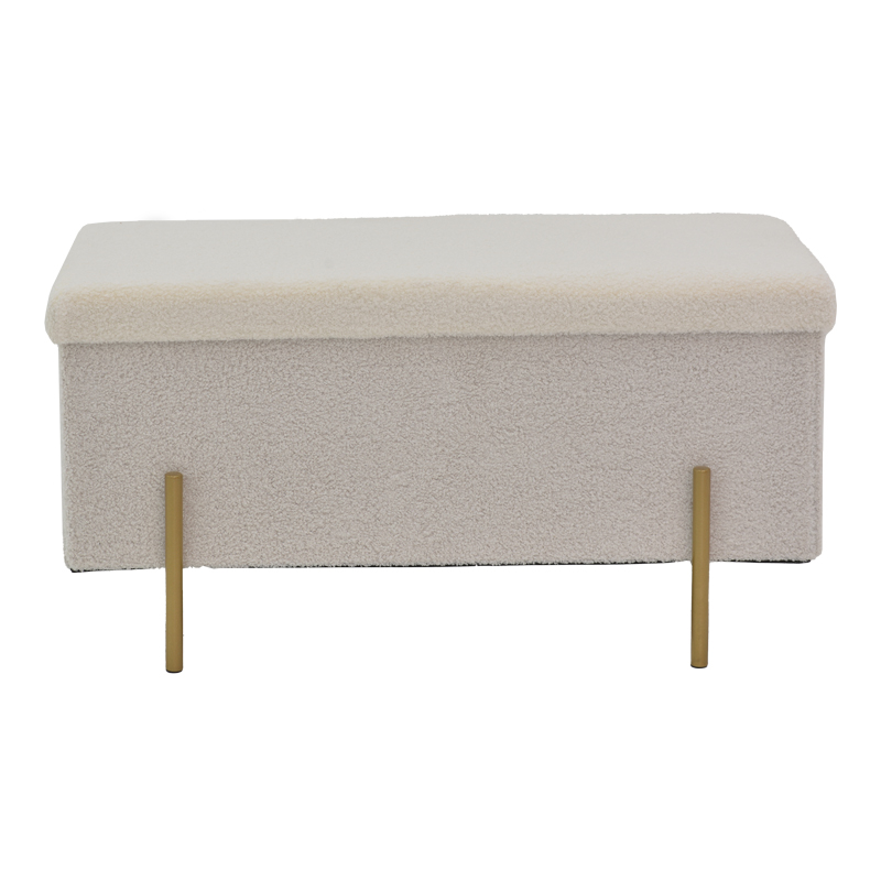 Σκαμπό-μπαούλο Ziwel pakoworld μπουκλέ λευκό-χρυσό 80x40x40εκ