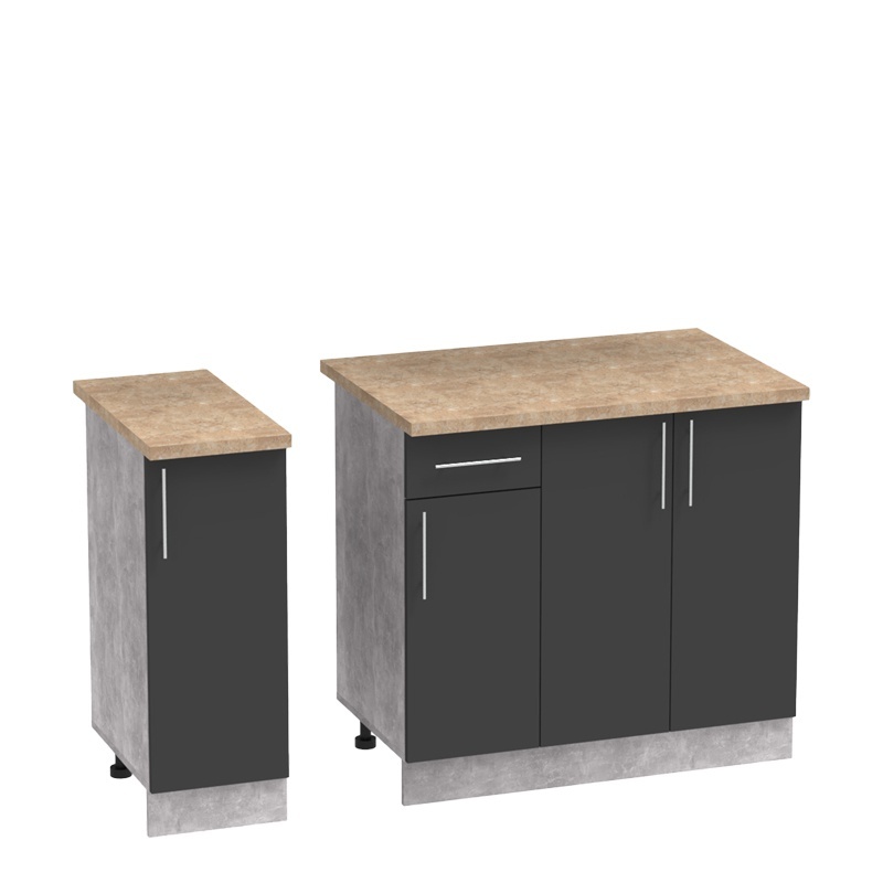 - Κάτω: Ένα διπλό ντουλάπι, ένα μονό και ένα ντουλάπι με συρτάρι