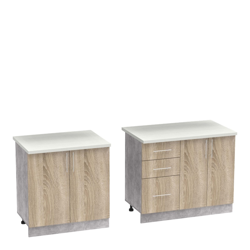- Κάτω: δύο διπλά ντουλάπια και 3 ευρύχωρα συρτάρια