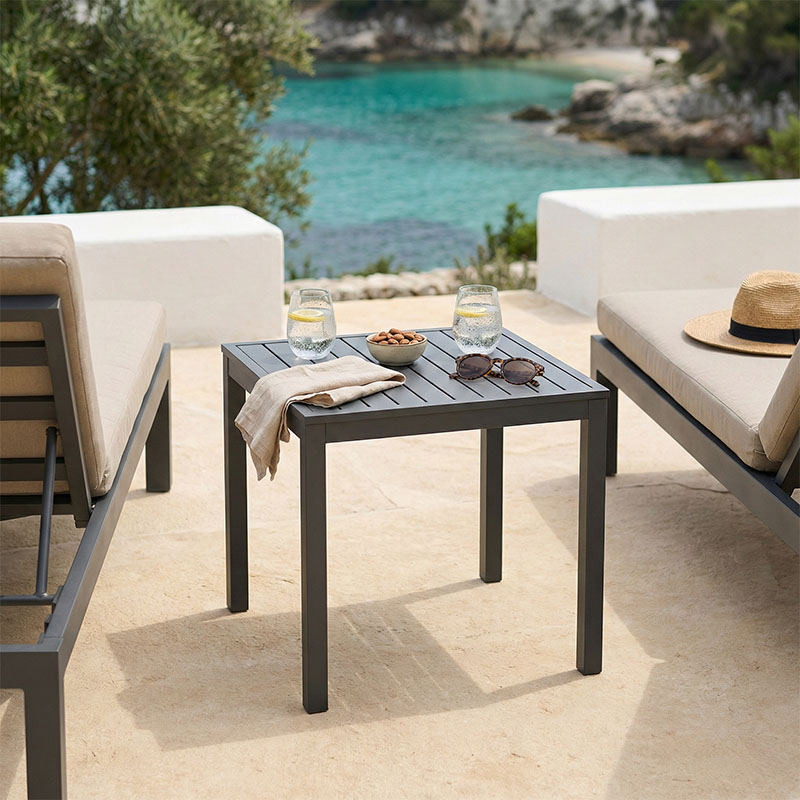 - Κατασκευασμένο από εξαιρετικής ποιότητας αλουμίνιο. Το αλουμίνιο είναι ένα εξαιρετικά ανθεκτικό υλικό για εξωτερική χρήση, καθώς αντέχει στις καιρικές συνθήκες χωρίς να διαβρώνεται ή να σκουριάζει. Είναι επίσης ελαφρύ και εύκολο στη μετακίνηση, κάνοντάς τον ιδανικό για εξωτερικούς χώρους.