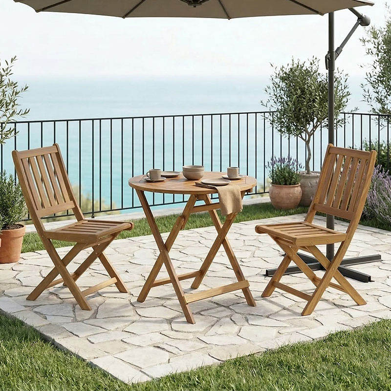 Τραπεζαρία Elijie-Carpuva pakoworld σετ 3τεμ πτυσσόμενο φυσικό μασίφ ξύλο ακακίας Φ70×74εκ