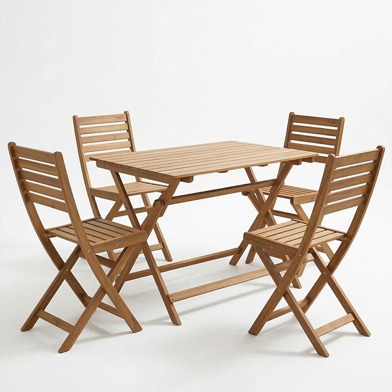 Τραπεζαρία Fatel-Jaybo pakoworld σετ 5τεμ πτυσσόμενο φυσικό μασίφ ξύλο ακακίας 100x65x72εκ