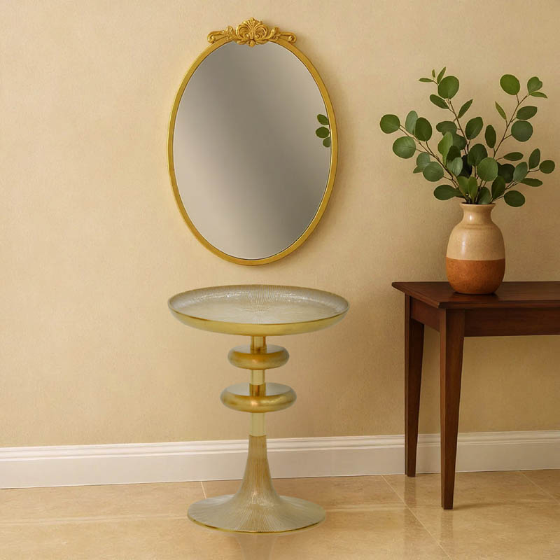 Βοηθητικό τραπέζι Trego I Inart χρυσό-λευκό μέταλλο Φ33×42εκ
