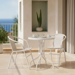 Τραπεζαρία Watson-Obbi σετ 3τεμ pakoworld μέταλλο λευκό-γυαλί Φ60x70εκ