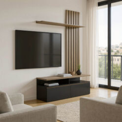 Σύνθετο σαλονιού Perlento pakoworld σε μαύρο με sonoma απόχρωση 140x41x219.5εκ