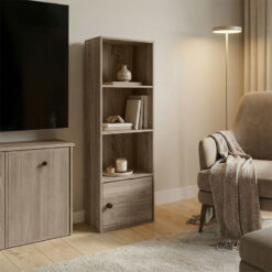 Βιβλιοθήκη-στήλη Lenobia pakoworld με ντουλάπι sonoma 30.5x24x95εκ