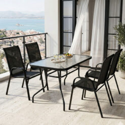 Τραπεζαρία Valor-Calan pakoworld σετ 5τεμ μέταλλο μαύρο-γυαλί-textilene μαύρο 110x60x70εκ
