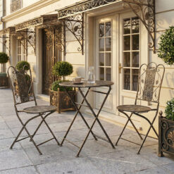 Τραπεζαρία Drill pakoworld σετ 3τεμ μέταλλο χρώμα χαλκού antique