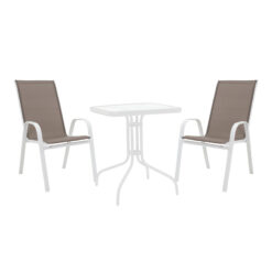Τραπεζαρία Watson-Calan pakoworld σετ 3τεμ μέταλλο λευκό- γυαλί 70x70x70εκ