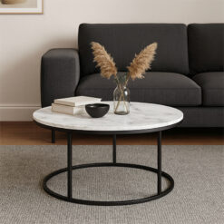 Τραπέζι σαλονιού Sikele pakoworld λευκή όψη μαρμάρου και μαύρα μεταλλικά πόδια Φ60x40εκ