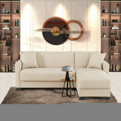 Γωνιακός καναπές-κρεβάτι αναστρέψιμος Stashio pakoworld ύφασμα κρεμ 202x143x84εκ