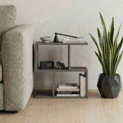 Βοηθητικό τραπέζι-βιβλιοθήκη Wesmol pakoworld ανθρακί όψη μαρμάρου 50x20x50εκ